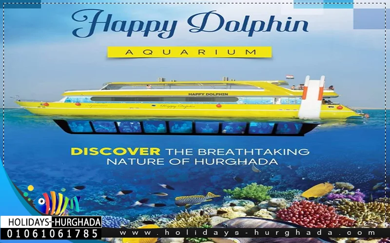 The Happy Dolphin Trip is a wonderful mix of relaxation, exploration, and fun at sea. Begin with a ride on a glass-bottom boat/submarine, where large viewing windows reveal the stunning underwater scenery of Hurghada’s coral reefs.